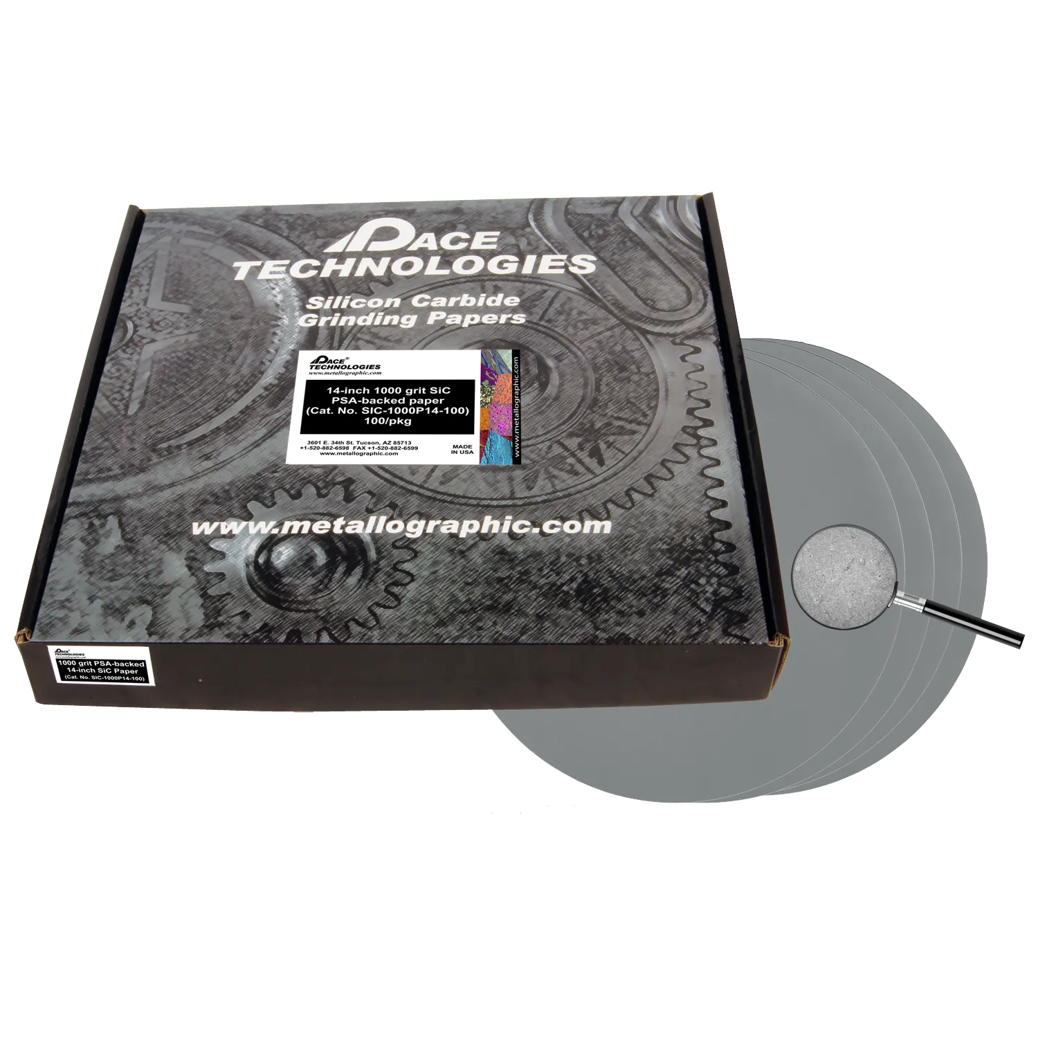 14-inch 1000 grit SiC PSA (adhesive backed) Abrasive Grinding papers, available in 25, 50, and 100/box.